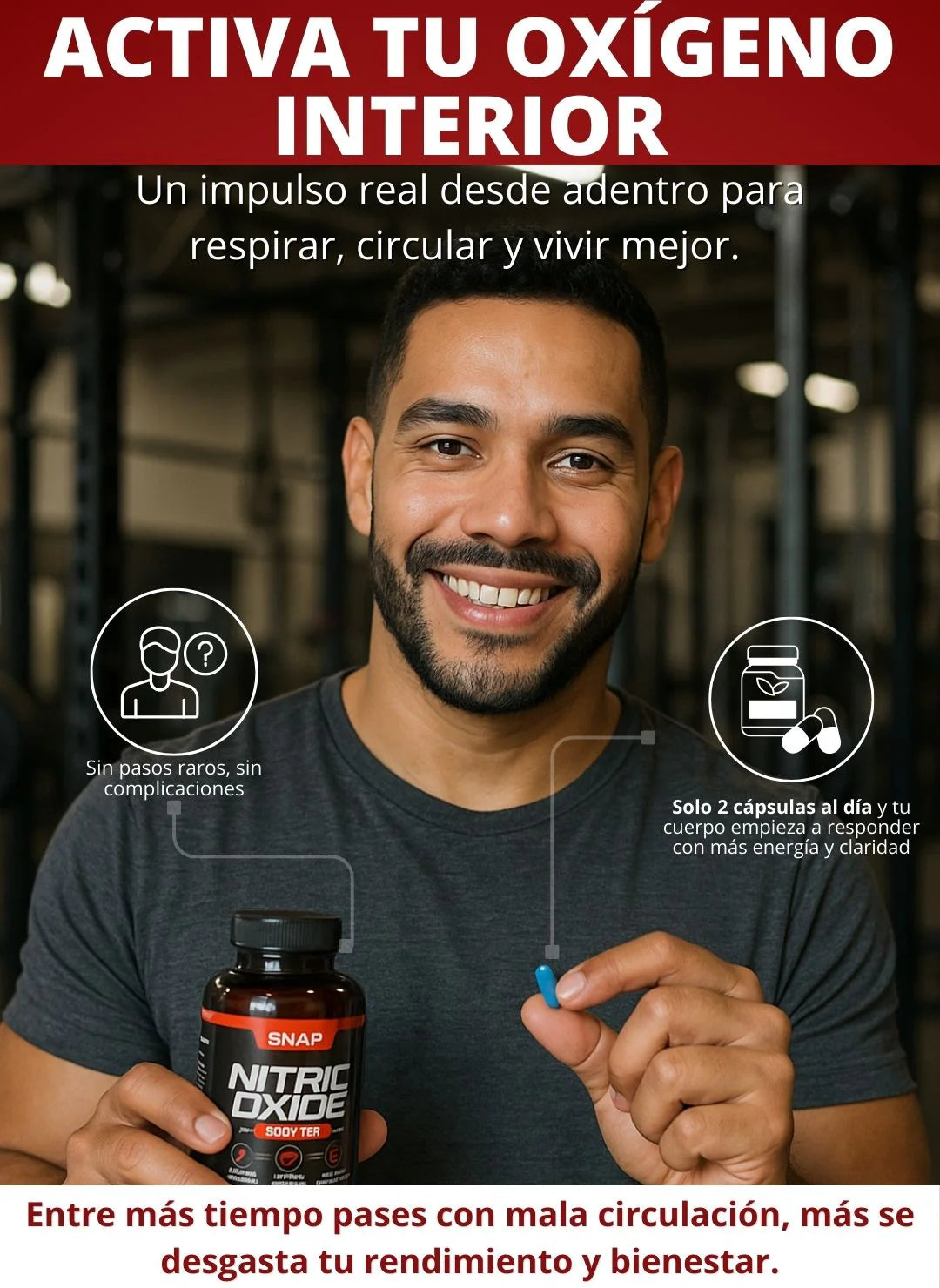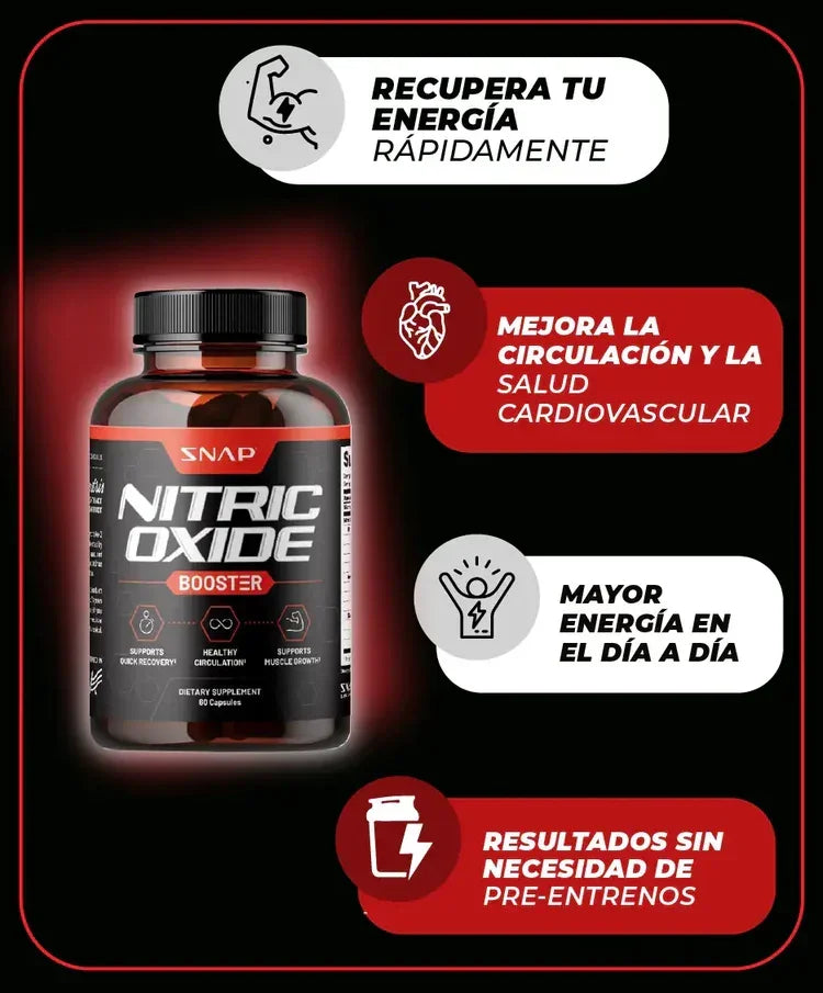 Los pre-entrenos dan un “subidón” con cafeína y químicos que terminan en un crash. SNAP trabaja desde adentro: mejora tu circulación y oxigenación, para darte energía real y duradera sin taquicardias ni dependencia.